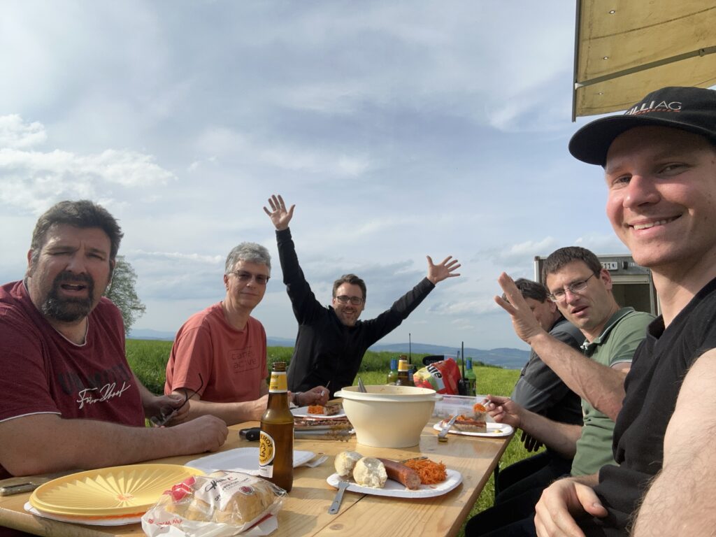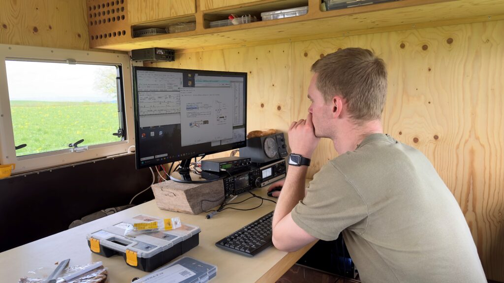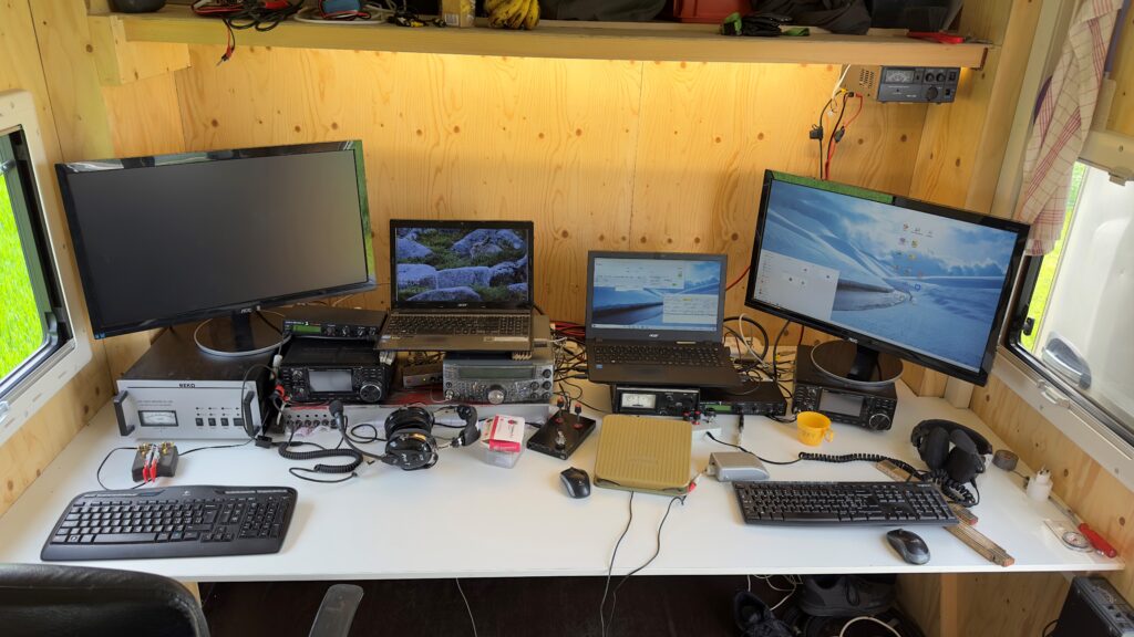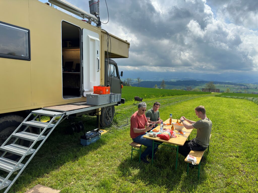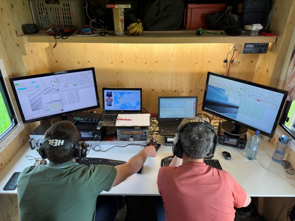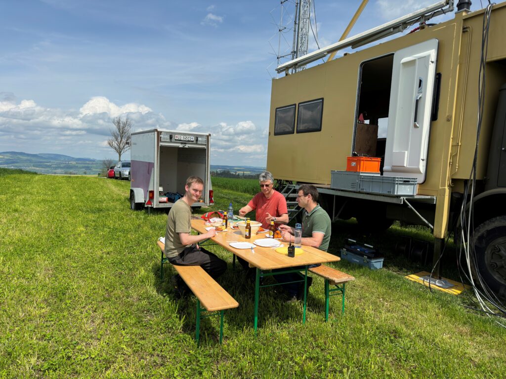 Das Operating Team, bestehend aus Thomas HB9EKV, Pascal HB9FRA, Vinc HB9HJZ und Joachim DF1GL, war guter Dinge und richtete zwei Stationen im Steyr ein.